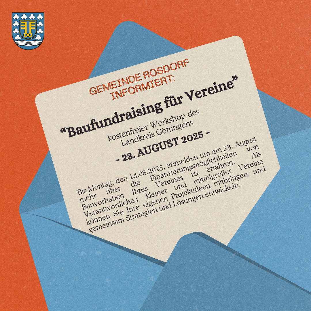 Die Servicestelle Bürgerschaftliches Engagement im Landkreis Göttingen lädt am Samstag, 23. August 2025, von 11:00 bis 16:00 Uhr zu einem kostenfreien Workshop zur Finanzierung von Bauvorhaben von Vereinen in das Holbornsche Haus in Göttingen ein.