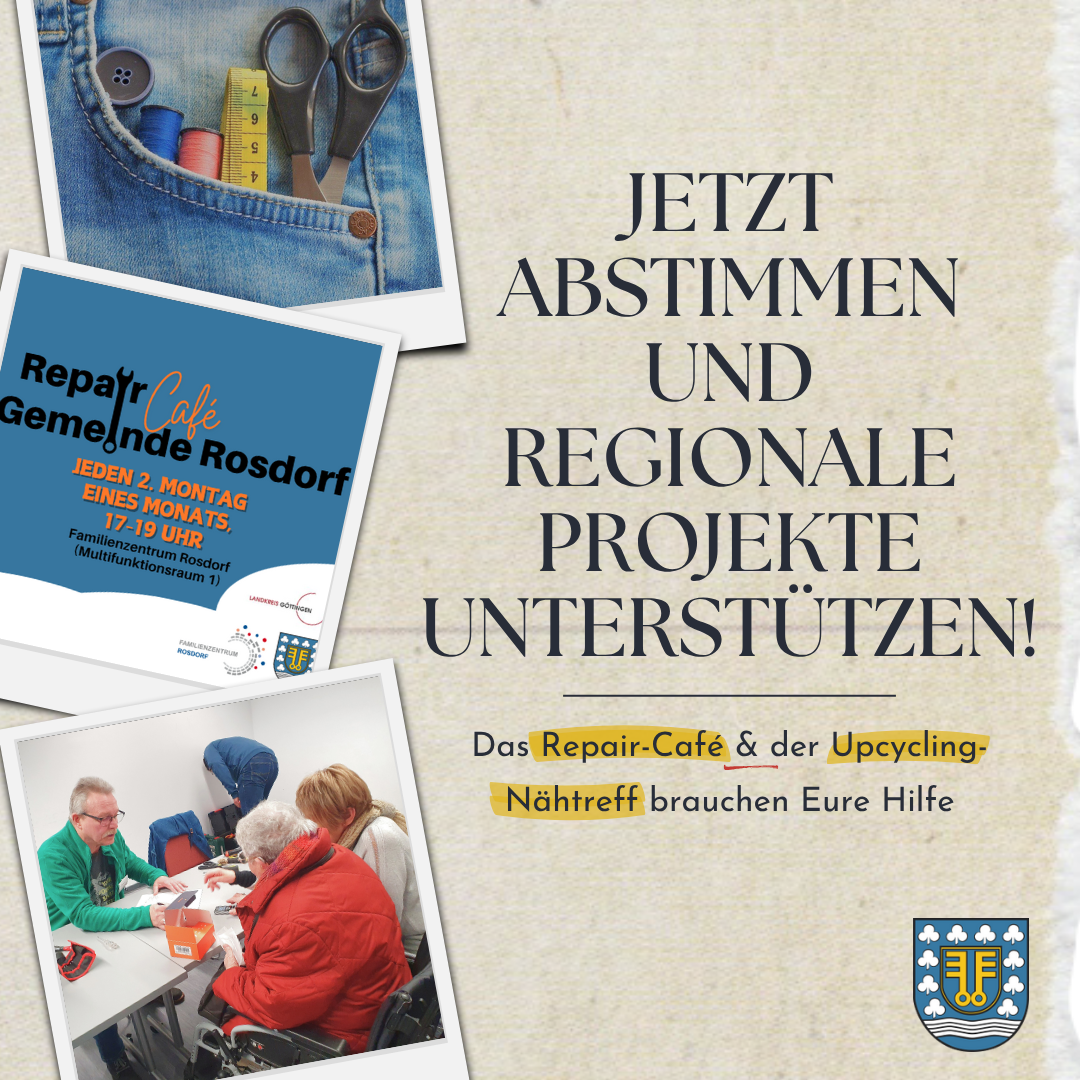 Das Repair-Café der Gemeinde Rosdorf ist bereits ein beliebter Treffpunkt für nachhaltiges Handeln. Nun soll ein ergänzender Upcycling-Nähtreff entstehen – beide Projekte setzen sich ehrenamtlich für mehr Nachhaltigkeit und Ressourcenschutz in der Gemeinde Rosdorf ein.