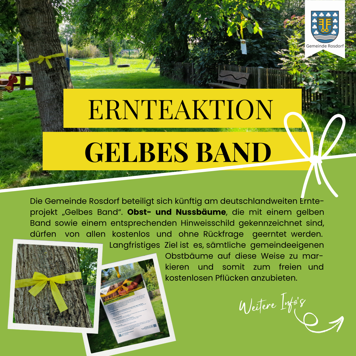 Die Gemeinde Rosdorf macht künftig mit beim bundesweiten Projekt „Gelbes Band“! Ab sofort dürfen Obst- und Nussbäume mit gelbem Band und Hinweisschild kostenlos und ohne Rückfrage geerntet werden.