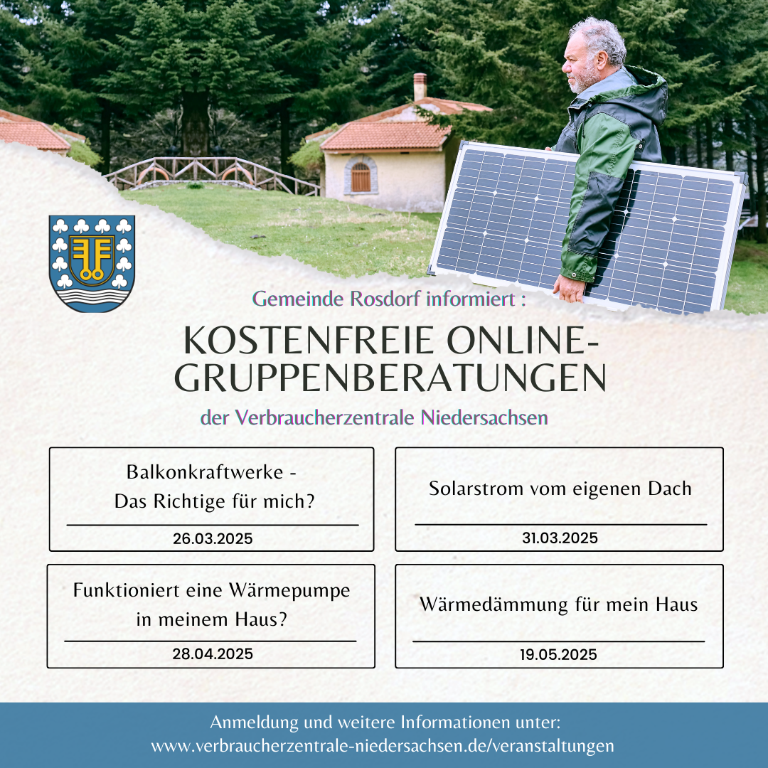 Gemeinde Rosdorf informiert: Kostenfreie Online-Gruppenberatungen der Verbraucherzentrale Niedersachsen