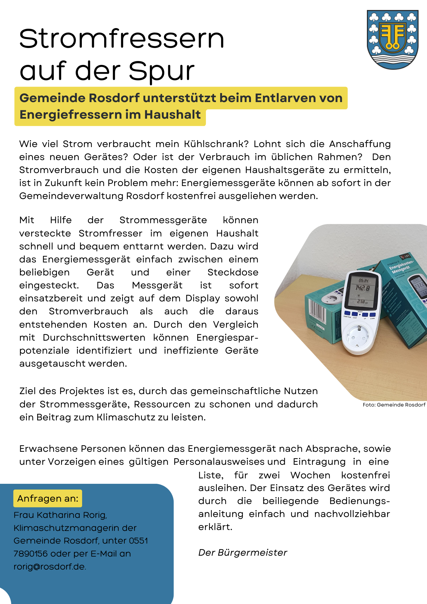 Stromfressern auf der Spur – Gemeinde Rosdorf unterstützt beim Entlarven von Energiefressern im Haushalt