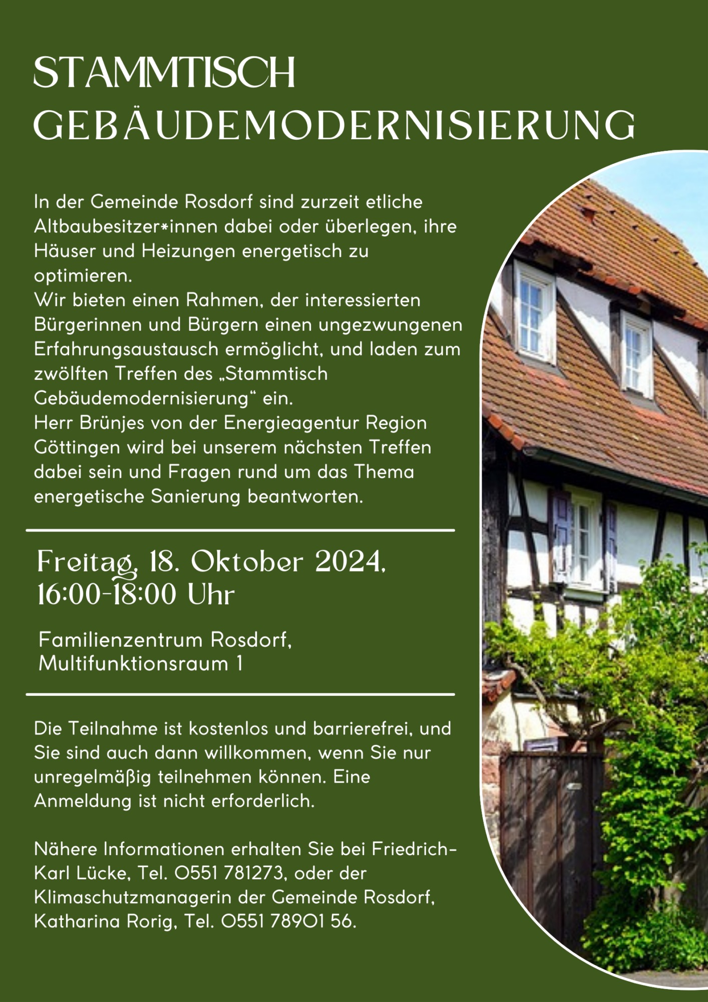 In der Gemeinde Rosdorf sind zurzeit etliche Altbaubesitzer*innen dabei oder überlegen, ihre Häuser und Heizungen energetisch zu optimieren.