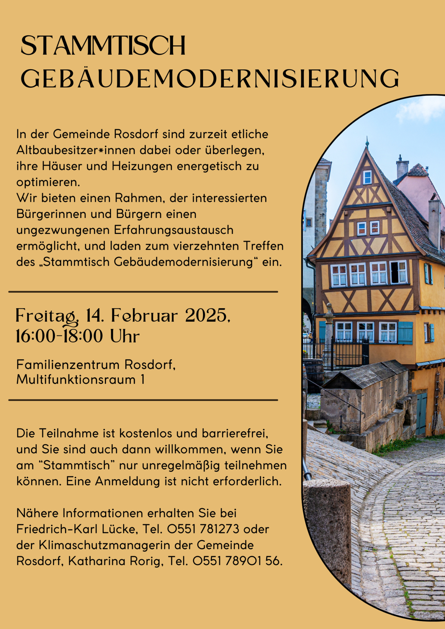Nähere Informationen erhalten Sie bei Friedrich-Karl Lücke, Tel. 0551 781273 oder der Klimaschutzmanagerin der Gemeinde Rosdorf, Katharina Rorig, Tel. 0551 78901 56.