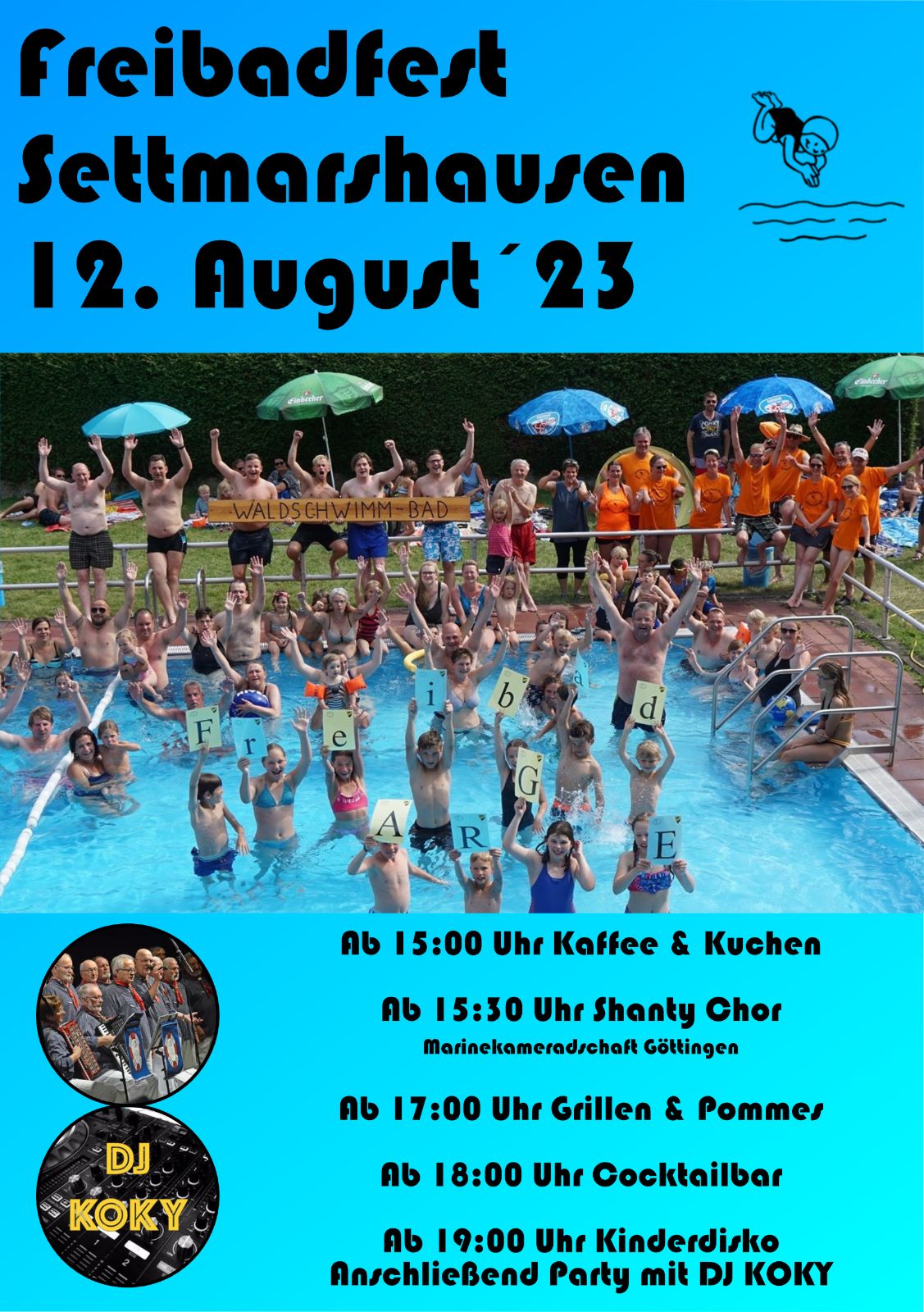 Freibadfest Settmarshausen 12.08.2023 In Kinder, Unterhaltung Abgeschlossenes Event Start 12. August 2023 15:00 Ende 13. August 2023 10:00