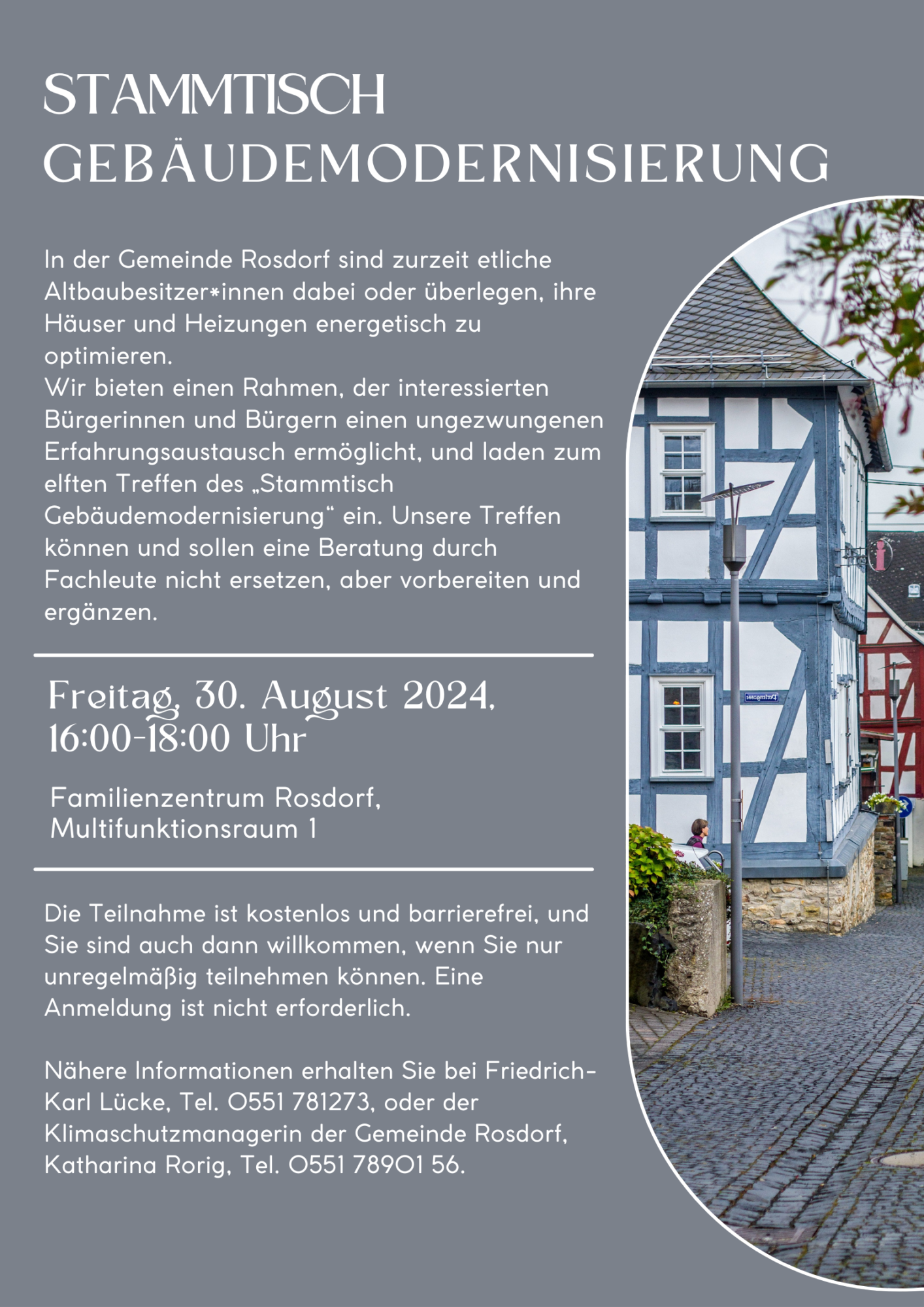 Nähere Informationen erhalten Sie bei Friedrich-Karl Lücke, Tel. 0551 781273, oder der Klimaschutzmanagerin der Gemeinde Rosdorf, Katharina Rorig, Tel. 0551 78901 56.