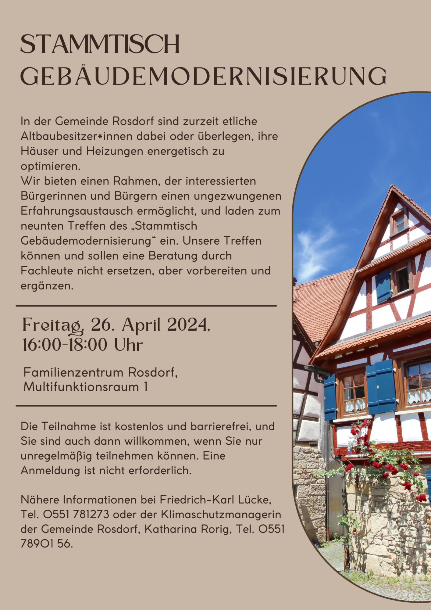 In der Gemeinde Rosdorf sind zurzeit etliche Altbaubesitzer*innen dabei oder überlegen, ihre Häuser und Heizungen energetisch zu optimieren.